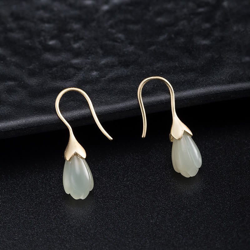 925 Sterling Silver Hetian Jade Magnolia Abundance Drop Earrings