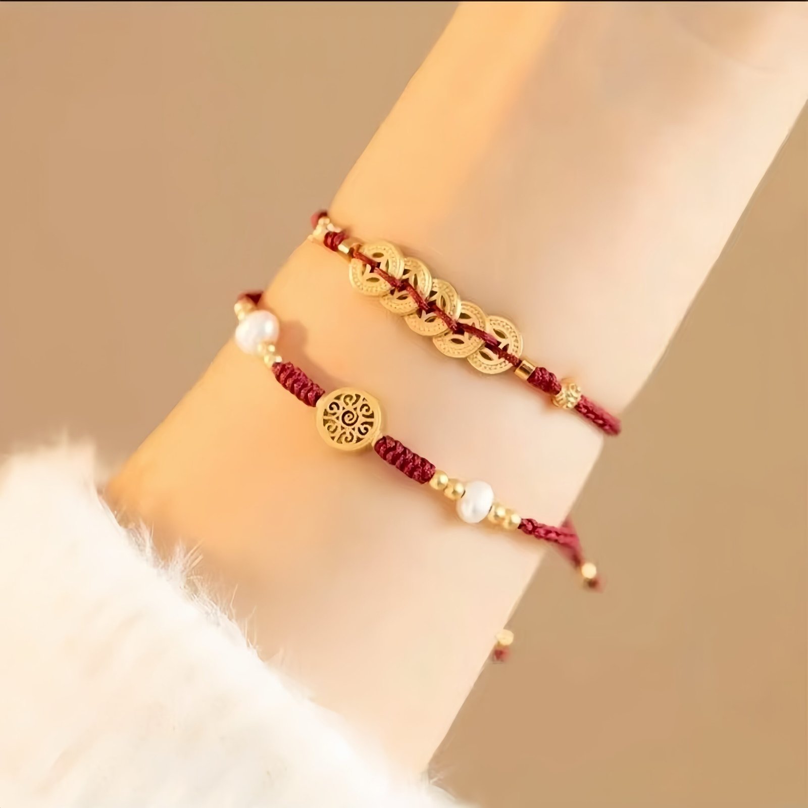 Alloy bracelet, red string bracelet for women, woven red string bracelet, couple’s gift, friendship gift for her.